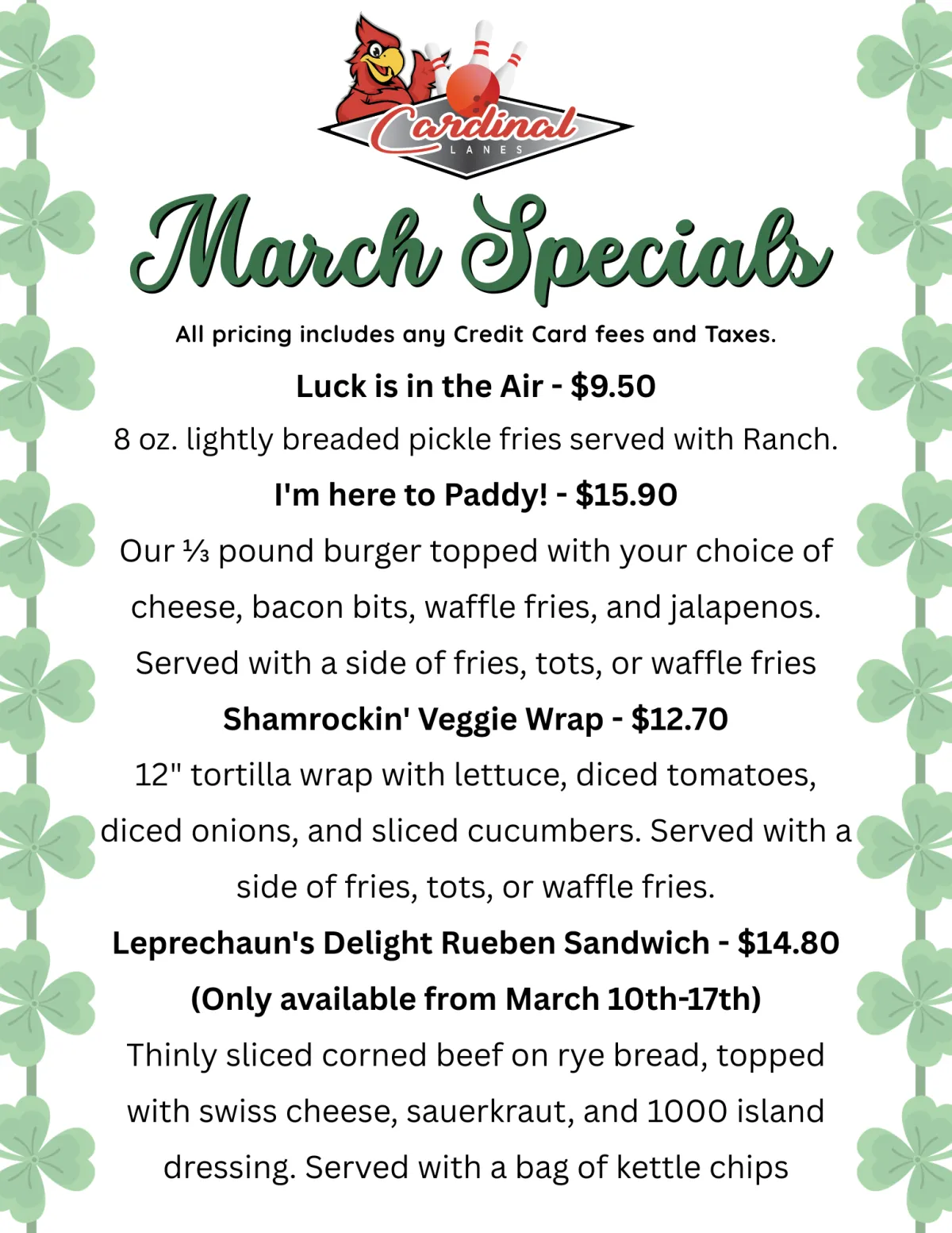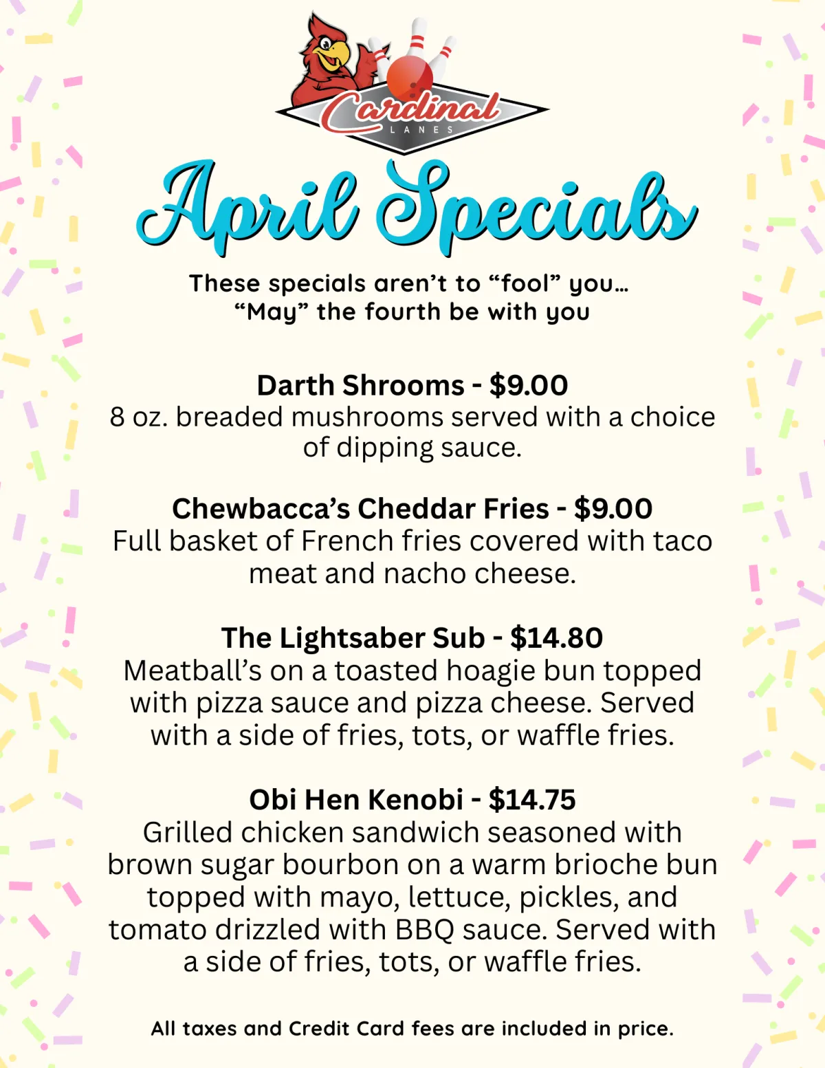 During all the fun and laughter, don’t forget to order a bite to eat from the menu or grab a drink from the bar in between turns. When you come to Cardinal Lanes, you’ll get a wide variety of foods to eat while you and your family have fun bowling.